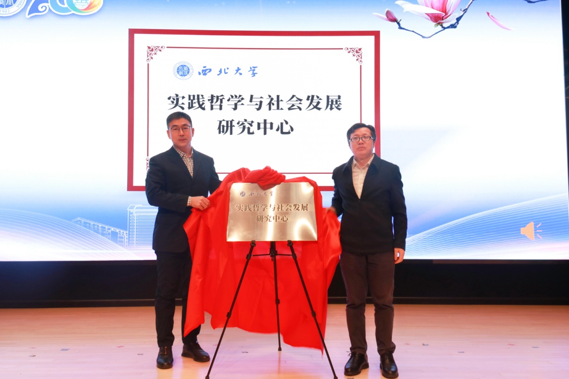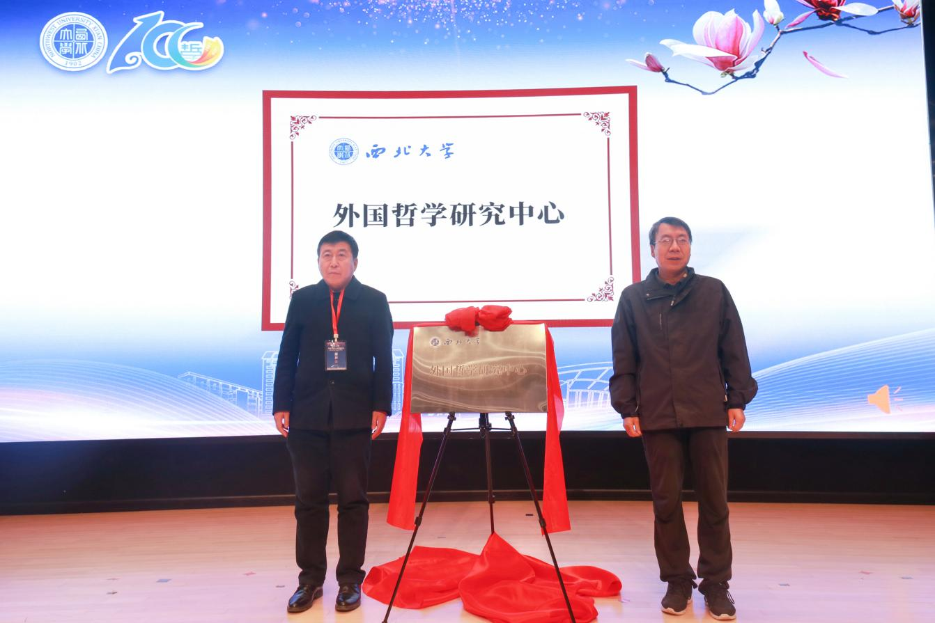 在庆祝大会上,赖绍聪和与会嘉宾共同为“陕西省人民政协理论与实践研究基地”“西北大学实践哲学与社会发展研究中心”“西北大学东西方哲学研究所”“西北大学外国哲学研究中心”揭牌。