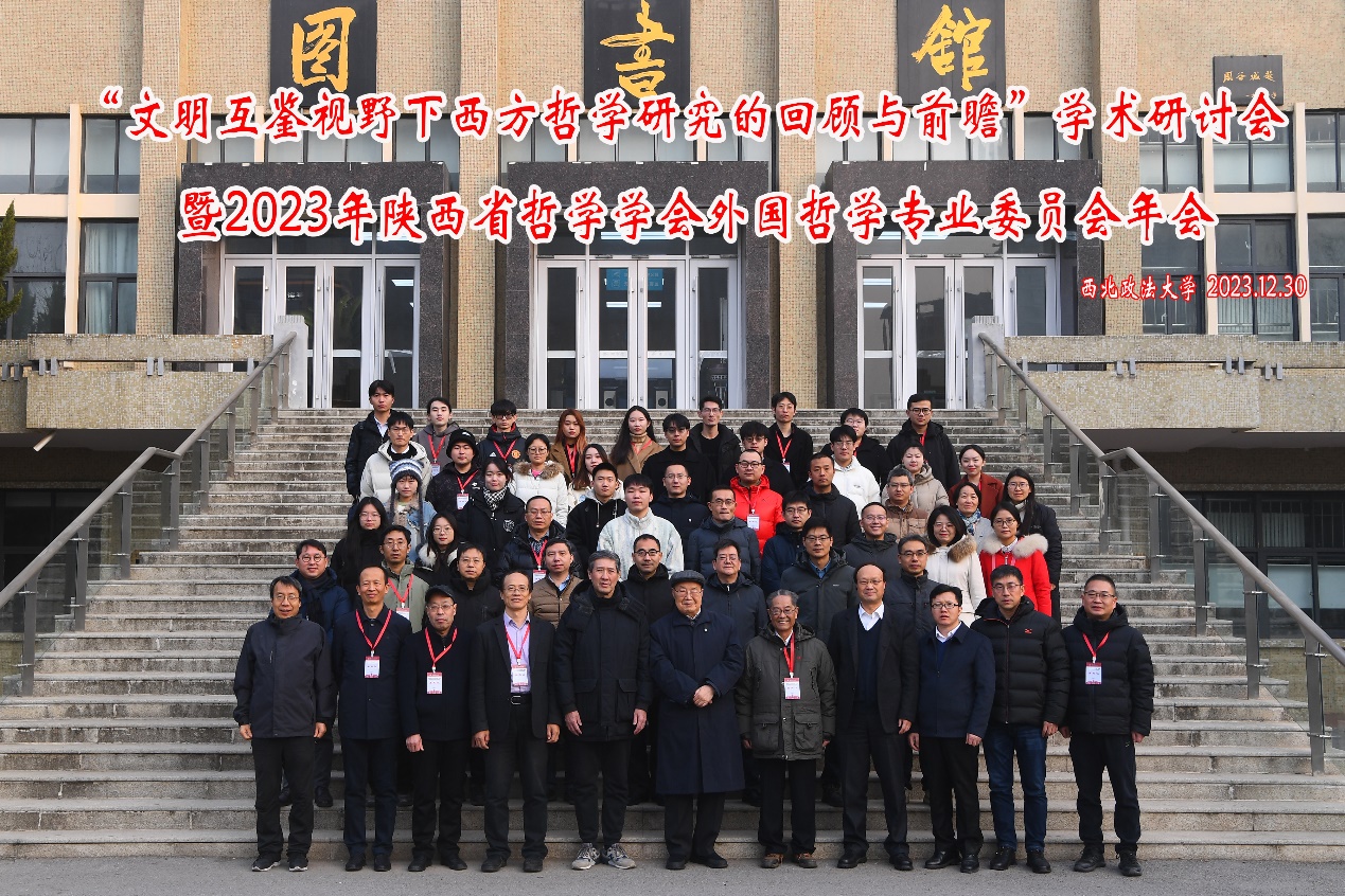 由陕西省哲学学会外国哲学专业委员会主办、西北政法大学哲学与社会发展学院承办的“文明互鉴视野下西方哲学研究的回顾与展望”学术研讨会于2023年12月30日召开,来自西安交通大学、西北大学、陕西师范大学、西安电子科技大学、长安大学等高校的50余名专家学者参会。会议还进行了外国哲学专业委员会第六届理事会推选工作,我院张学广教授当选第六届理事会理事长。