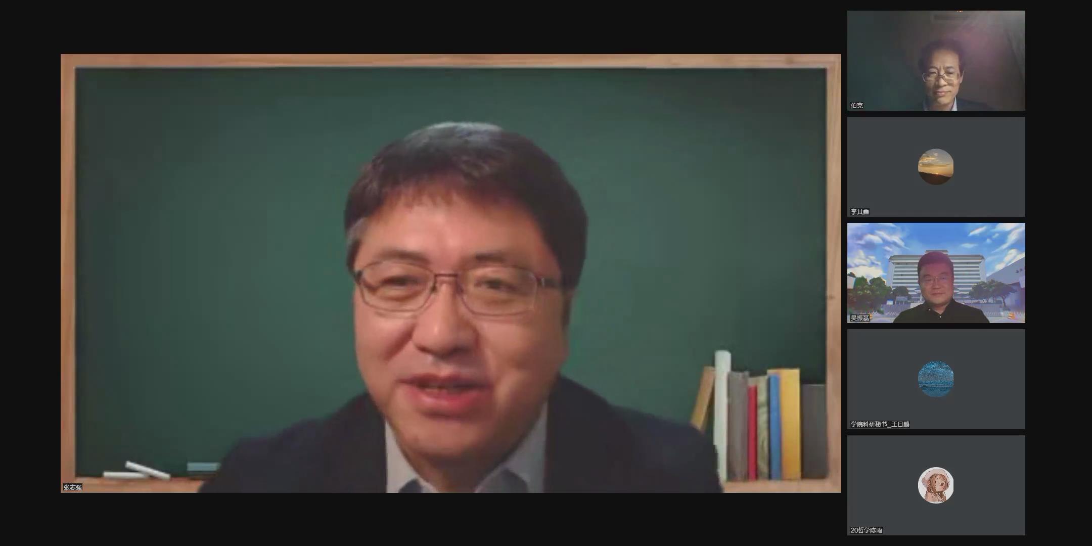 10月14日晚,中国社会科学院哲学研究所所长张志强研究员做客我校“侯外庐学术讲座”第二百四十六讲暨西北大学120周年校庆年系列活动、百廿西大校庆哲院系列讲座第一讲,在线作了题为“略论中国哲学的特质”的学术讲座。校党委常委、副校长吴振磊教授致欢迎辞,437必赢会员中心院长张学广教授主持讲座。437必赢会员中心师生300余人参加了讲座。